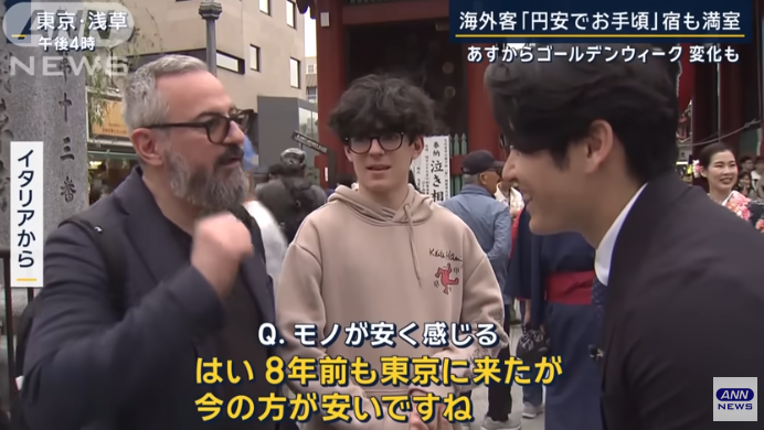来自意大利的游客也说:“当下汇率很划算,食物也很便宜。8年前我来过东京,相比来说,现在更便宜。”
