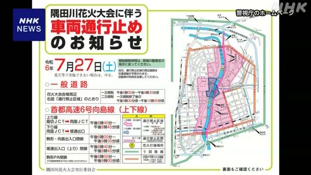 当天傍晚6点至9点半,隅田川沿岸南北约4公里区域将实施交通管制,预计东京地铁浅草站周边的管制将持续至晚上10点左右。同时,首都高速公路6号线部分路段也将在晚6点半起封闭约2小时。详细的管制时间和地点信息已在警视厅和大会官网公布。