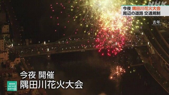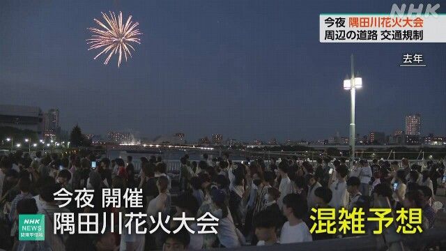 隅田川烟花大会是日本夏季花火大会的代表,自江户时代延续至今,目前为全国最大规模。大会将于当晚7点开始,预计将燃放约2万发烟花。会场周边从下午起实施交通管制,现场设置了相关提示牌,并呼吁公众警惕小偷和扒手。