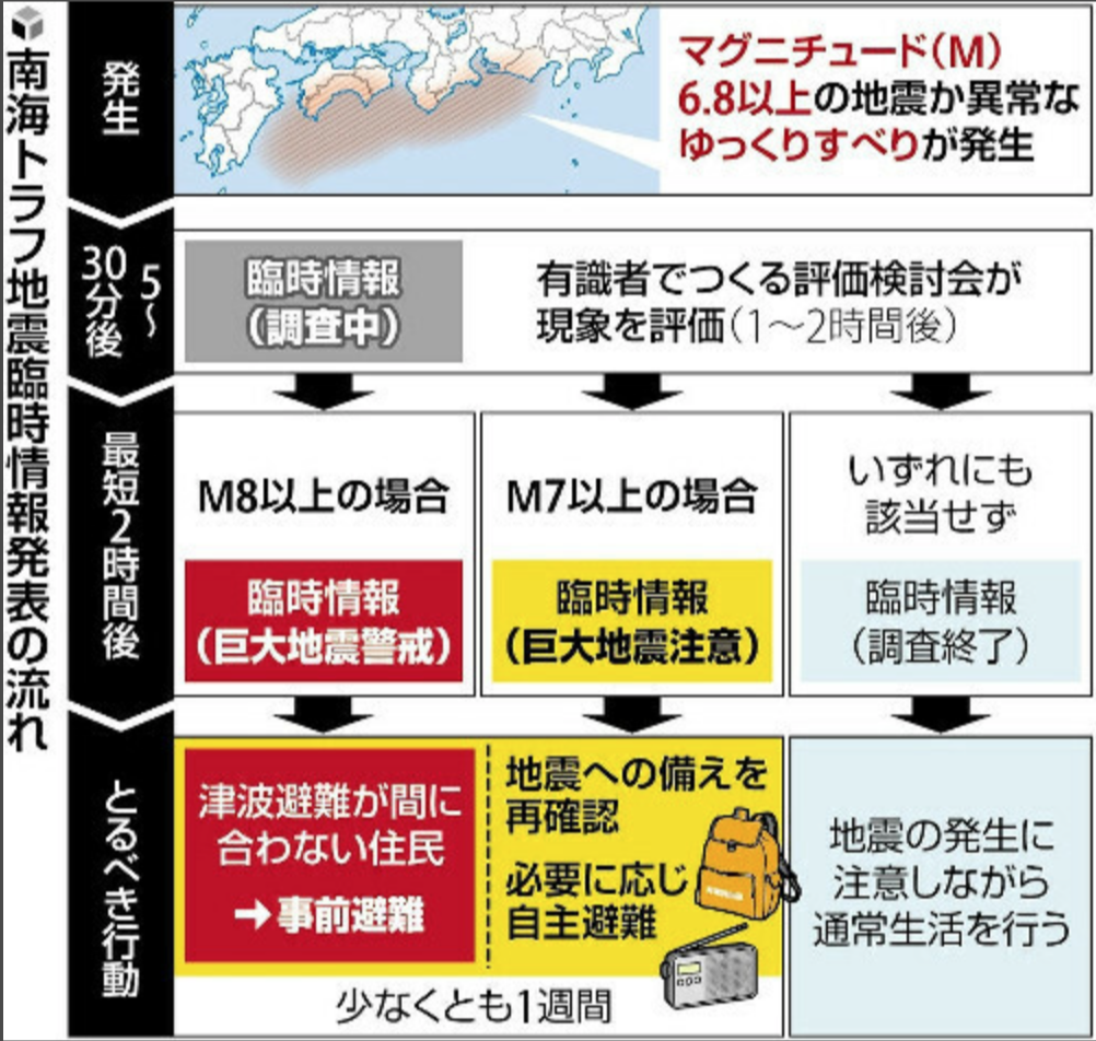 根据《读卖新闻》的调查,日本南海地震的临时信息发布后,至少有爱知、和歌山、高知、鹿儿岛四个县24个市町村共计139个避难所被开设。虽然“巨大地震注意”不要求提前避难,但一些自治体根据居民的需求开设了避难所,还有些自治体则在临时信息发布时规定了开设避难所的应对指针。