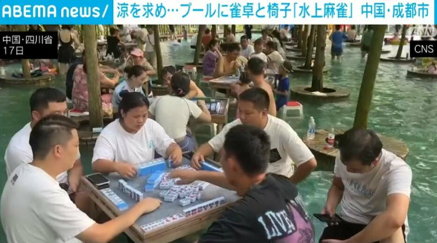 成都以打麻将闻名,这种“水上麻将”方式不仅给市民带来了乐趣,还成为应对酷暑的创意手段。