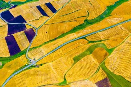 初秋之际,中国景色如画,山水间色彩斑斓,好似被大自然打翻的调色盘,展现季节更迭之美。
