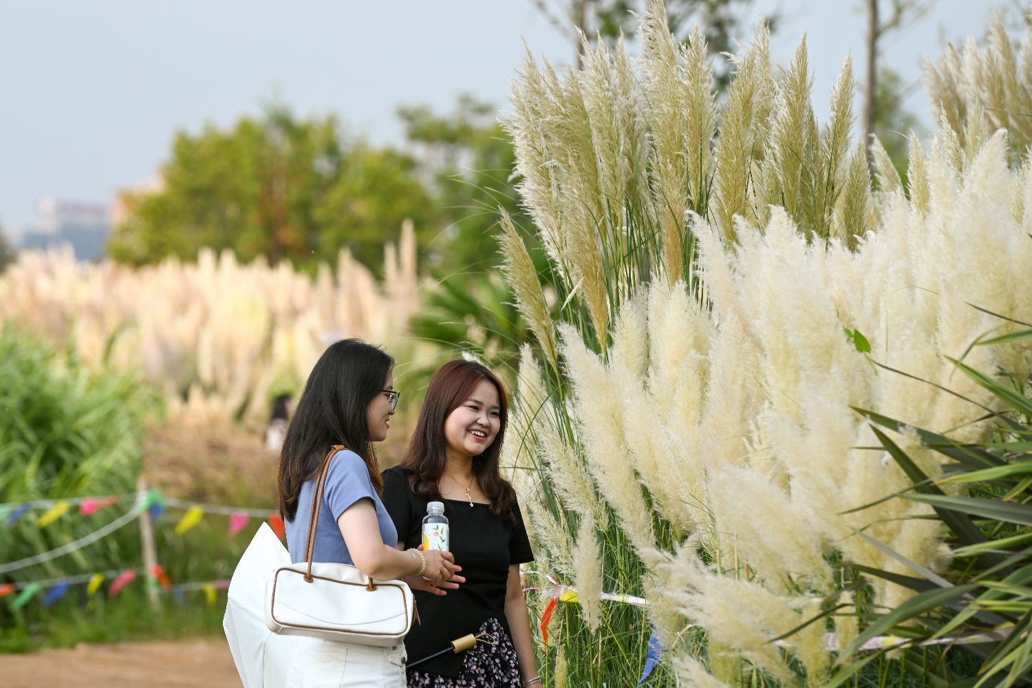 图为29日,云南省昆明市草海畔的荻花吸引游客前来感受秋日诗意。(中新社)