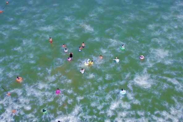 图为29日,福建平潭美丽的龙王头海滨浴场海水清澈澄碧(无人机照片)。(中新社)