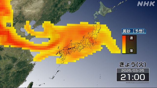 据日本气象厅介绍,黄沙受强风吹送,从大陆向东扩散,已抵达日本上空。目前,气象厅在东京与大阪两个地点进行目视观测,大阪管区气象台在25日凌晨6点确认黄沙飞来。
