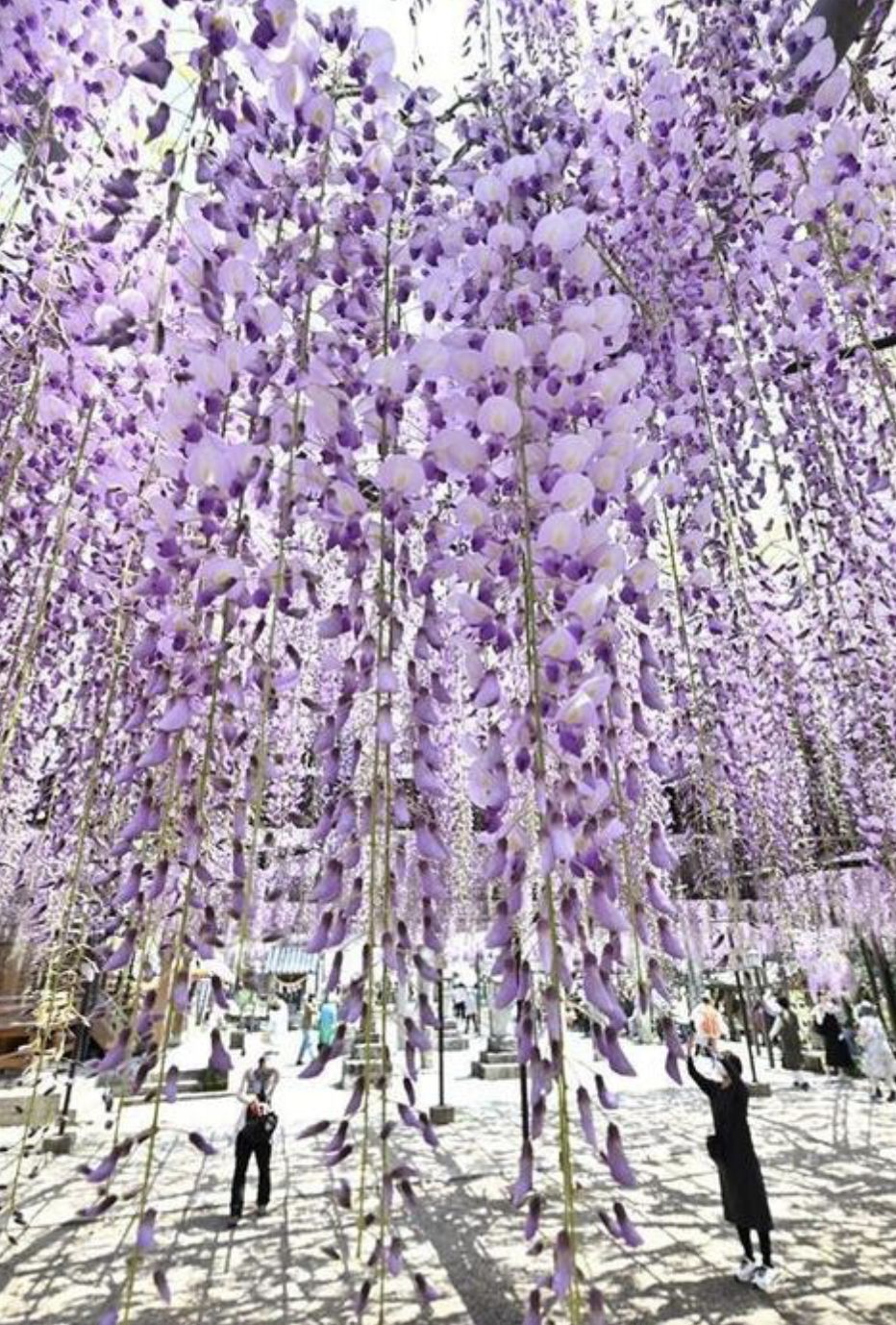 据称,受近几日温暖天气影响,藤花加速盛开。