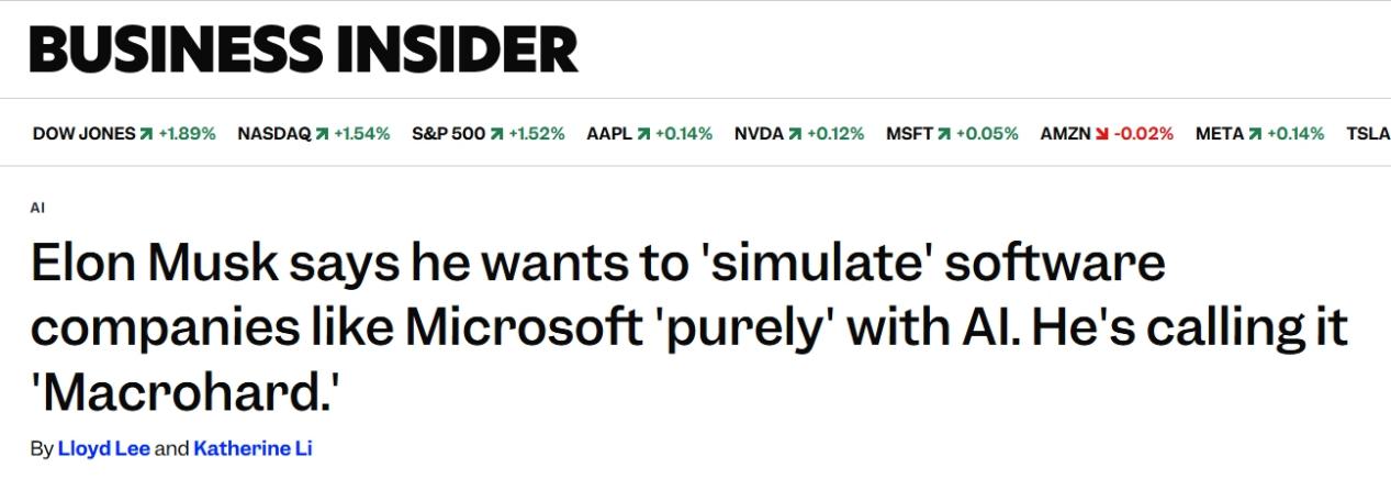 8月24日消息,据外媒Business Insider报道,埃隆·马斯克日前表示,他的人工智能初创公司xAI正在打造一家纯人工智能软件公司——“巨硬”(Macrohard)。他希望以此来“模拟”像微软(Microsoft)这样的软件公司。