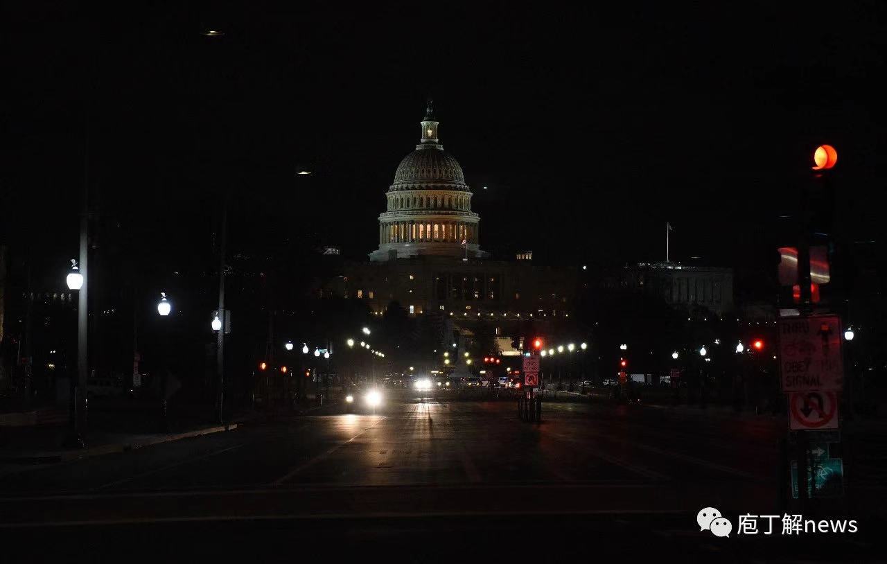 23时38分,我离开国会山,沿着宪法大道一路向西。华盛顿市区已实施宵禁,街面上除了警车,空无一人。此时的白宫,熄灭了所有的外部灯光。