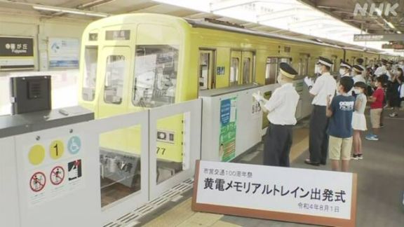 据报道,从1日开始限时运行之前,在名古屋市营地铁东山线的“藤丘站”举行了出发仪式。电车被包装成黄色进入站台,来访的铁道迷们鼓掌迎接。