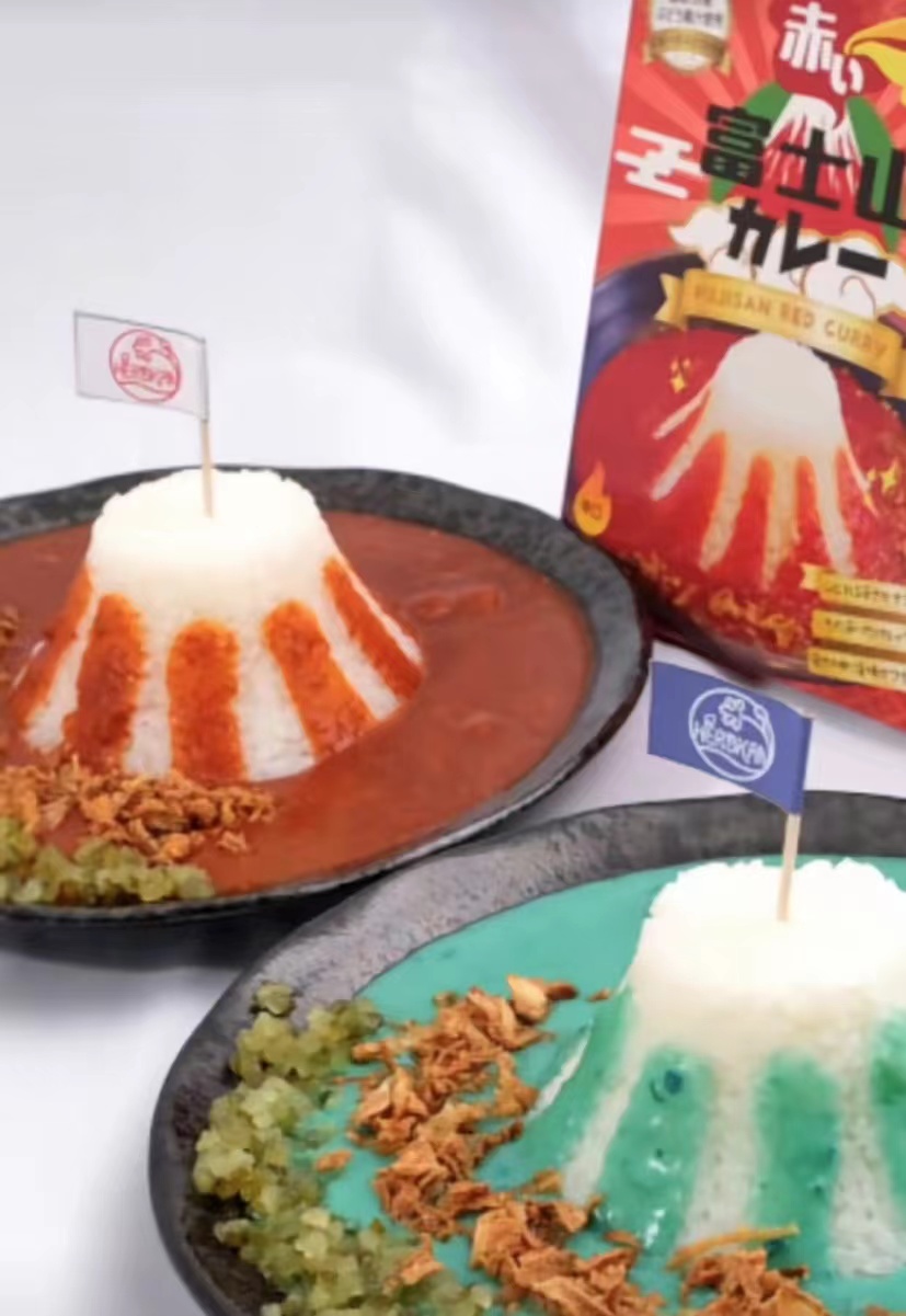 图为红色和蓝色的富士山咖喱饭。(图/社交平台“小红书”截图)