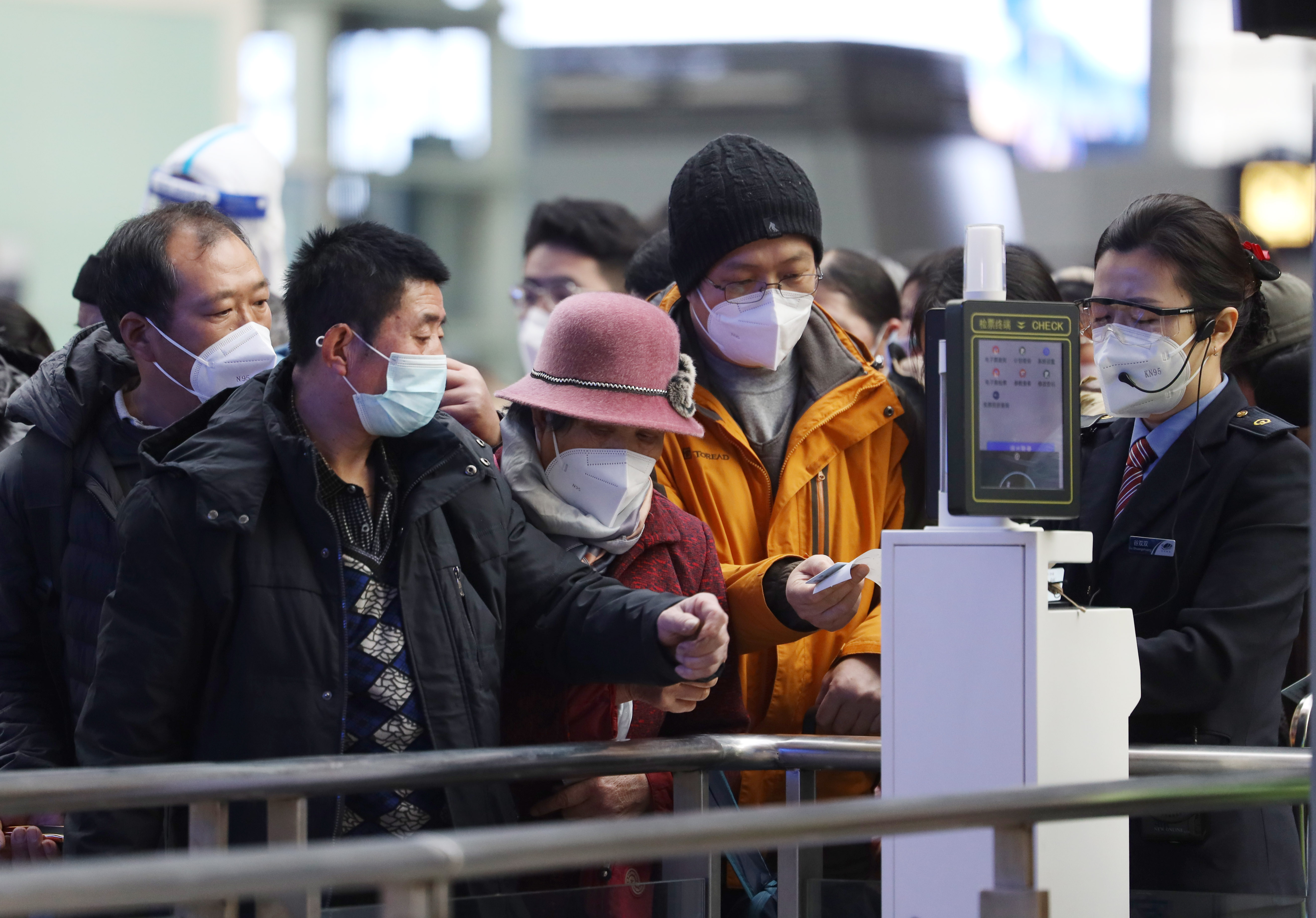1月7日,2023年中国春运拉开帷幕,旅客在北京南站验票乘车。 (日本头条郑闻摄)