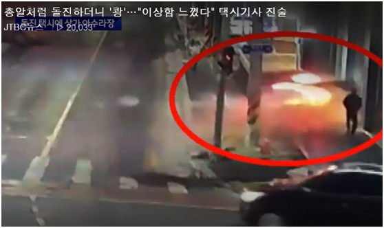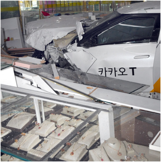 出租车飞速冲进金店的一瞬间。图源:JTBC报道截图