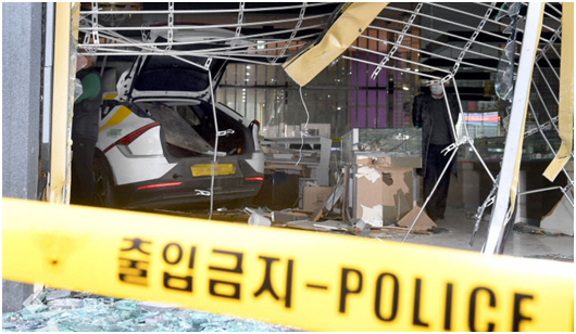 韩国一出租车如“子弹”般飞驰冲入金店,金银首饰瞬间散落一地