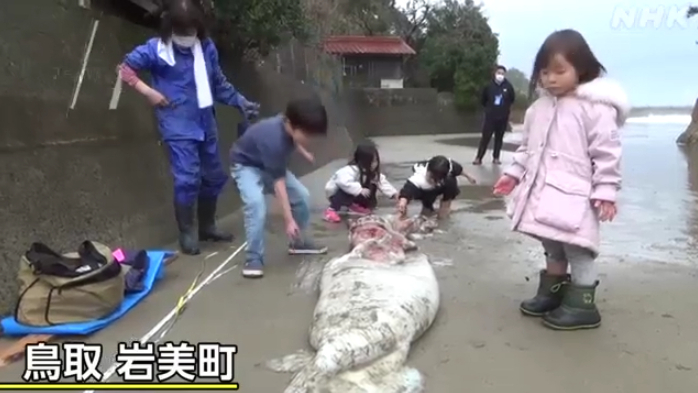 鸟取县岩美町海岸发现大王乌贼 体长超过3米