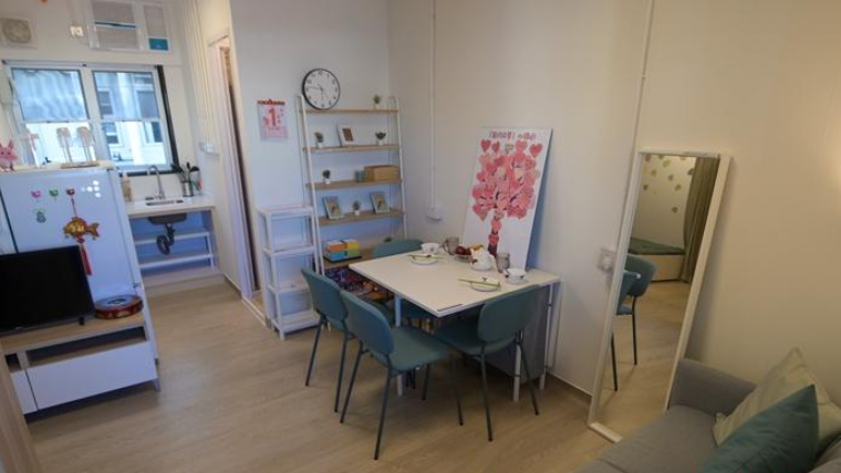 香港特区政府房屋局安排媒体参观位于九龙启德的“简约公屋”示范单位。图为“简约公屋”示范单位内部。(图/中新社)