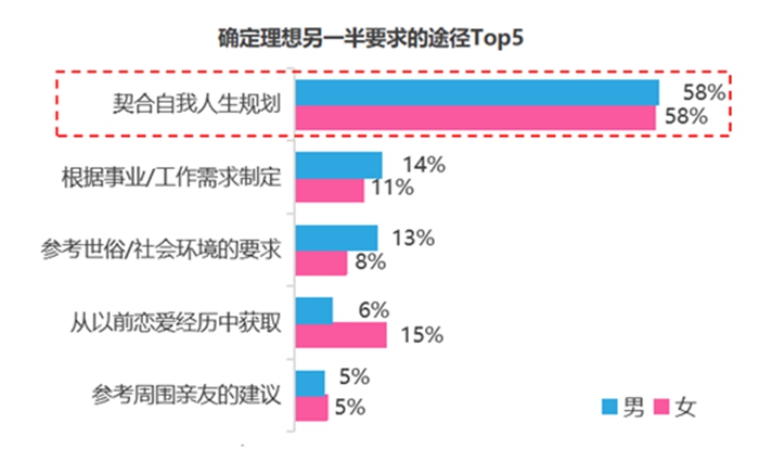 报告指出,越相信爱情,对爱情的期待就越多,在挖掘恋爱对象时的要求就越高。调查显示,超过95%的非婚青年都对自己理想的另一半有所要求和规划,其中四成以上都有着清晰的要求,女性有清晰要求的占比略高于男性。