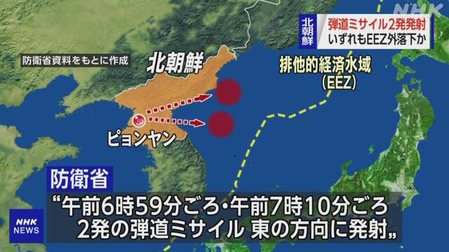 (日本头条讯)就在日本时间20日上午7点左右,日本防卫省宣布朝鲜方面再次发射了两枚弹道导弹,并且据称两枚导弹均落在了日本的排他经济区之外。另外,与此同时,朝鲜通过其国家媒体宣布称,进行了所谓的“超大型火箭炮”的短程弹道导弹的两次射击训练。