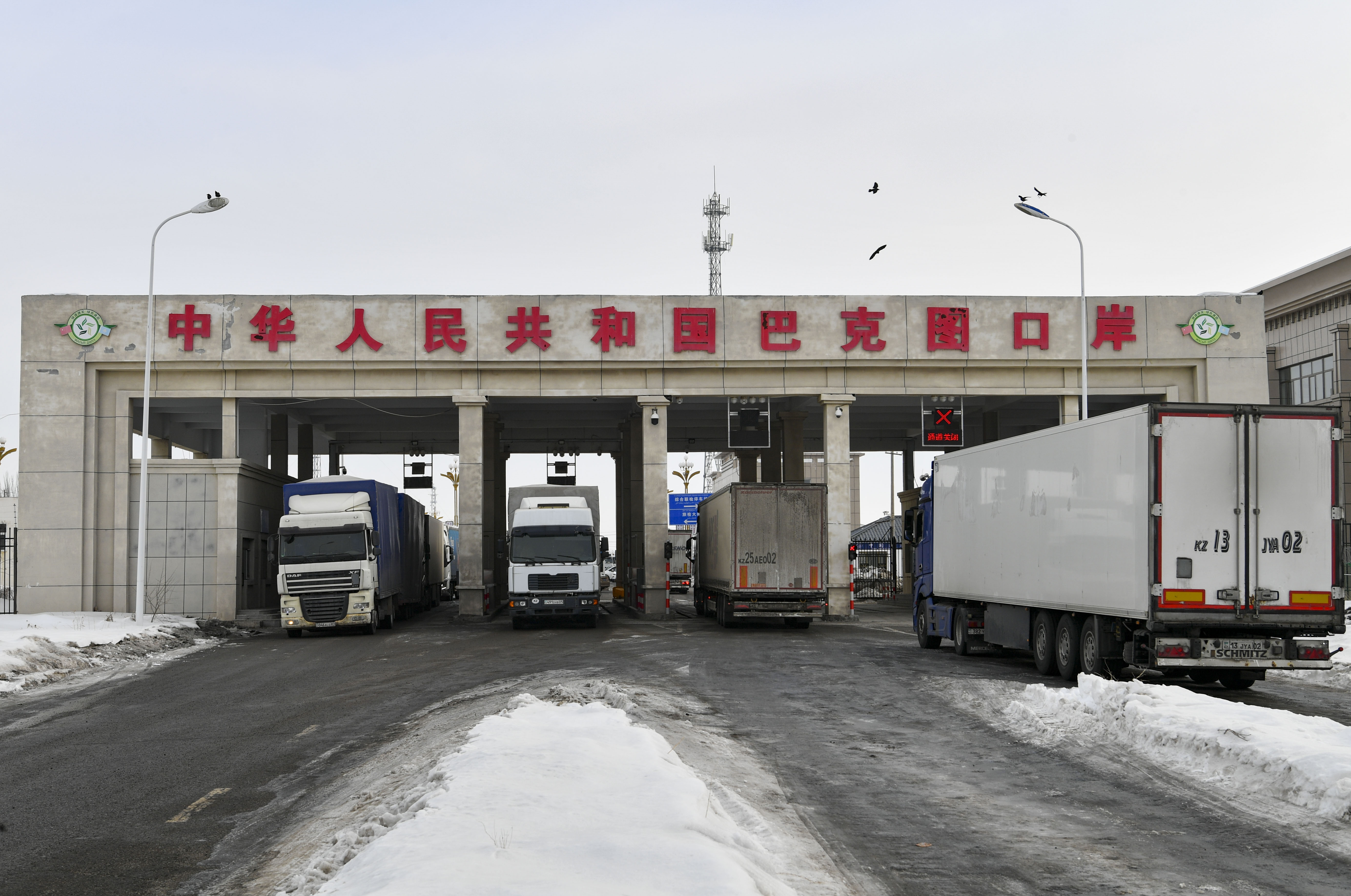 2月4日,货车进出新疆巴克图口岸。(图/新华社)