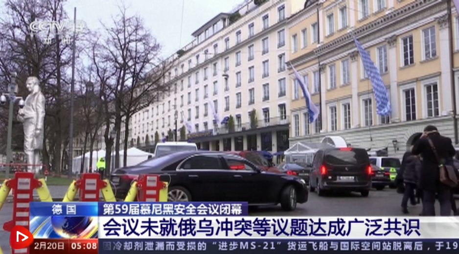 当地时间19日,第59届慕尼黑安全会议在德国慕尼黑闭幕。(图/中国央视新闻视频截图)