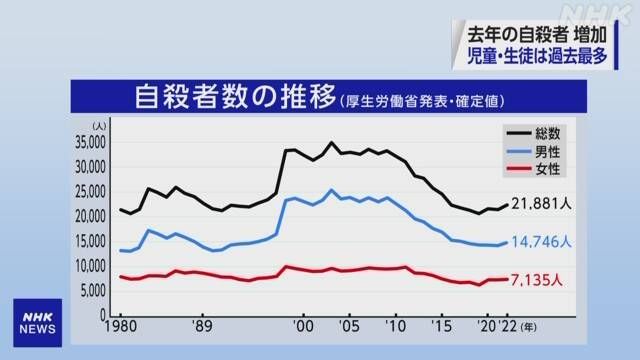 厚生劳动省表示:“现在孩子和中老年男性在增加,除了进一步推进现在进行的电话和网络咨询、支援之外,还将与相关省厅合作推进对策。”
