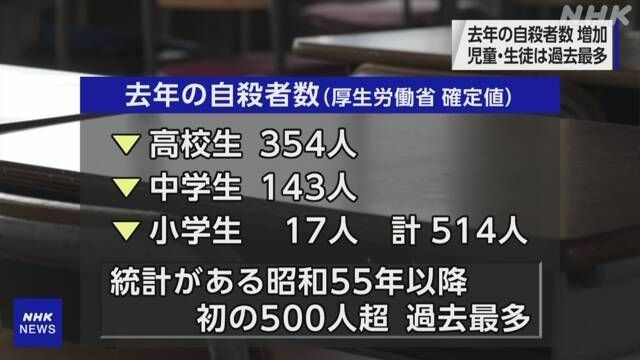 (日本头条讯)去年一年间,全国自杀人数增加到21881人,其中儿童、学生人数创历史新高。