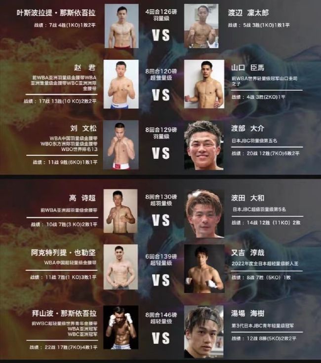 中国方面除了拜山波的弟弟之外,其余人都曾经拿到过WBA、WBC或者WBO亚洲的金腰带或者WBA的国家头衔,甚至拜山坡和赵君还一度有过WBA组织的世界排名。