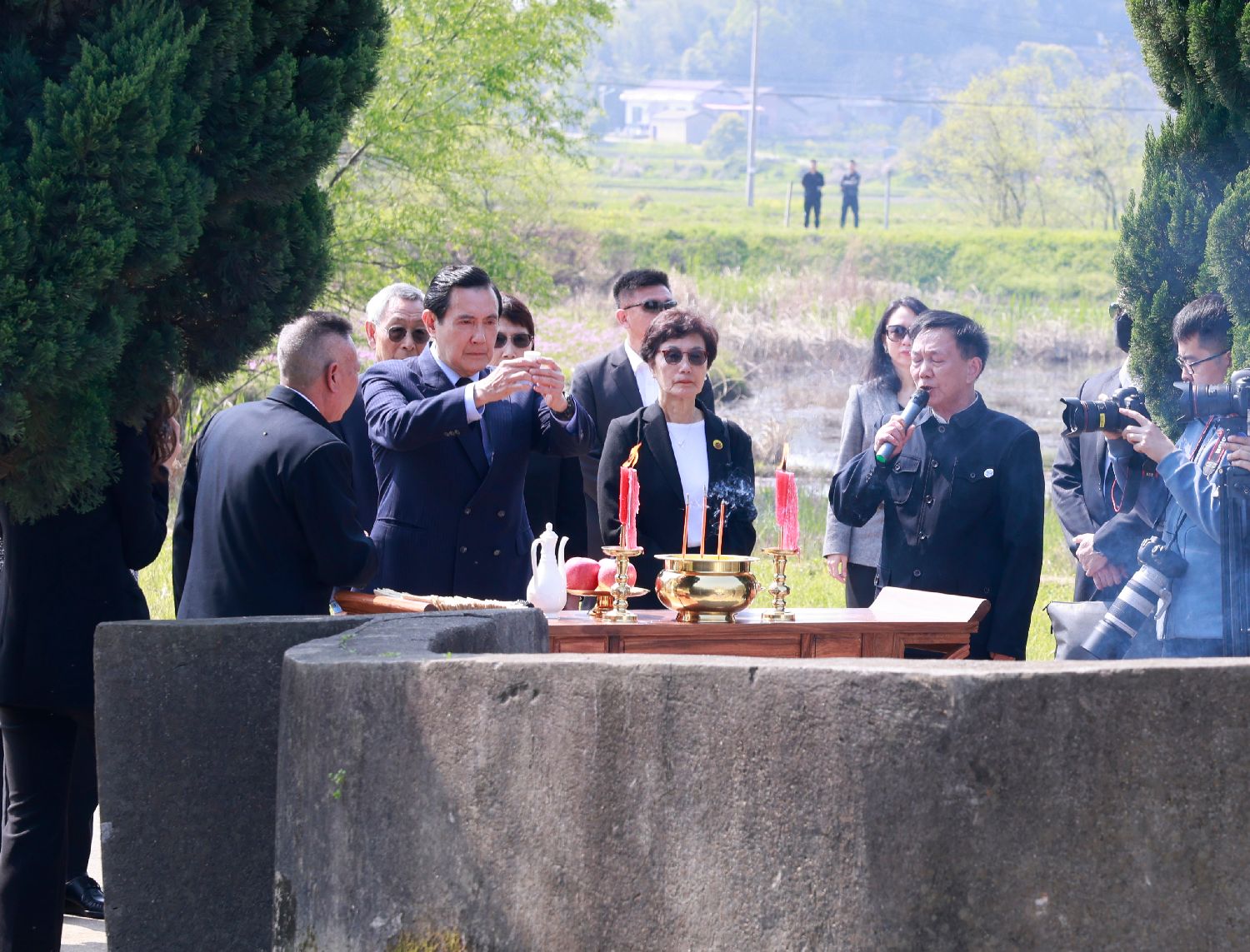 前两日的行程中,马英九和4位姐妹一同前往双亲母校,倾听父母中学时代的故事;按照当地习俗给祖父马立安上坟祭拜,并宣读祭文……