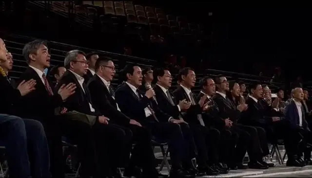 图为马英九在湖南卫视《声生不息•宝岛季》录制现场与台湾青年及所有观众演唱《月亮代表我的心》。(图/北京《环球时报》视频截图)
