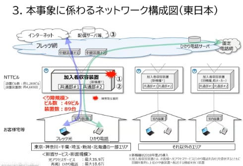 (日本头条讯)根据NTT东日本和NTT西日本两家公司共同透露,发生在本月3日早晨的互联网连接服务和光纤电话通信故障是由于100多台具有相同功能的通信设备同时发生故障所致,而目前该公司还在详细调查原因。对此日本总务省表示,根据法律规定,此次故障可能属于“严重事故”并要求该公司尽快提供报告。