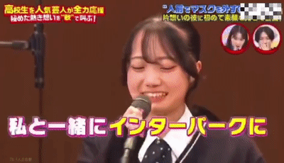 害羞过后妹子也没忘了正事,开始了当天的重头戏唱歌表白。比起刚摘掉口罩时的拘谨,稻川明显放松了许多。