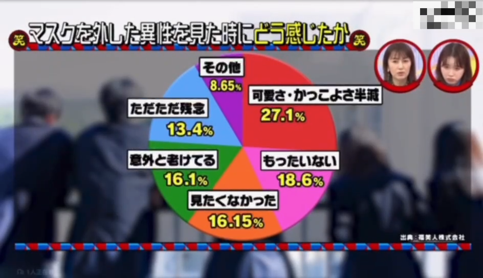 至于为什么会有这样的想法?那大概是因为摘下口罩后周围的声音不那么动听吧。日本网上曾做过一项关于【看见摘掉口罩的异性时的内心想法】的调查,结果很遗憾,正面回答寥寥无几,剩下的答案……就还真挺伤人的。