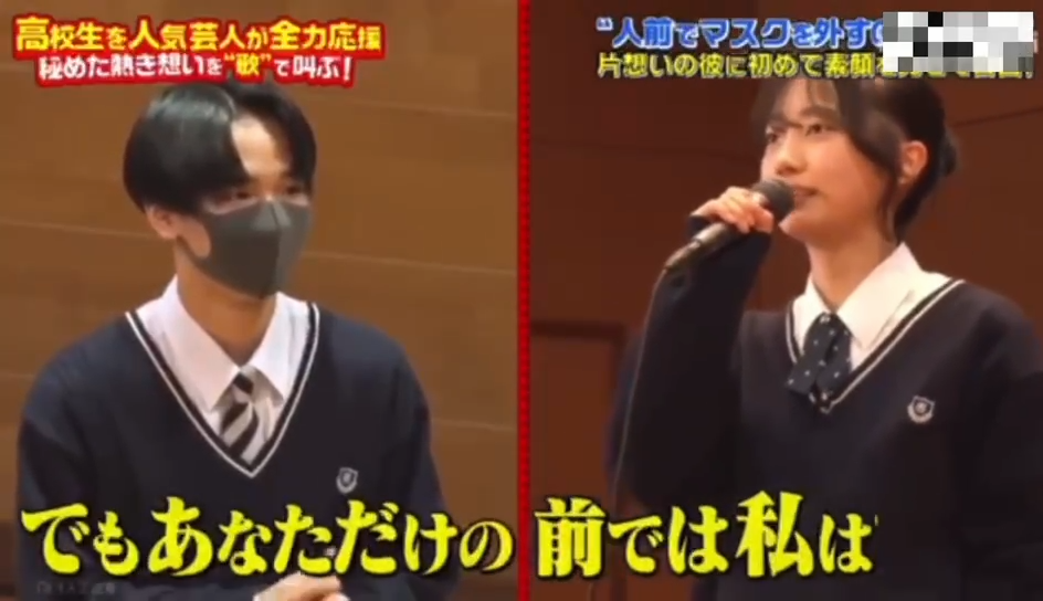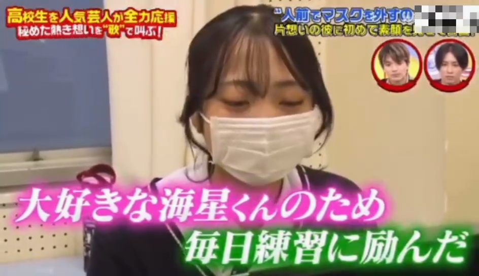 因为对自己的长相没有自信,我从来没在喜欢的人面前摘下过口罩。但我今天想要加油摘下口罩,为他唱首歌。