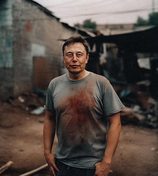 印度数字艺术家戈库尔·皮莱借助AI技术将马斯克等全球知名富豪的形象,放置在贫民窟背景中。图源:外媒