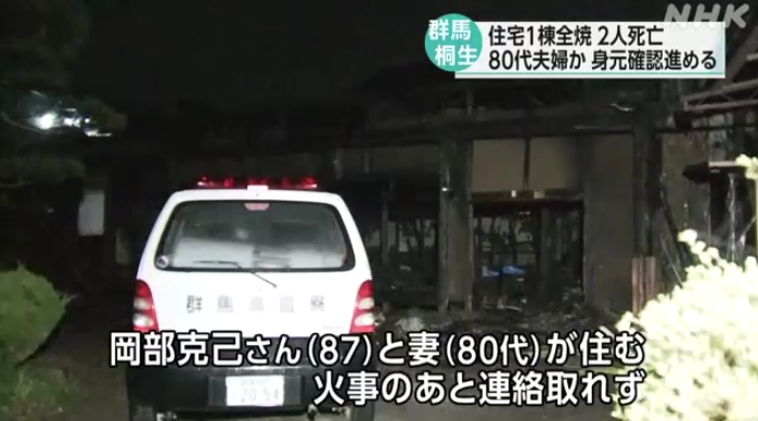 据NHK报道,15日晚8点半左右,当地居民向消防局报告称:“附近的房子着火了。”火灾约3小时后被扑灭,但是一栋木结构平房全部被烧毁,搜救人员在残骸中发现了两具遗体。警方表示,“这栋房屋住着87岁的岡部克己和他的80多岁妻子,但火灾之后无法联系上他们。”
