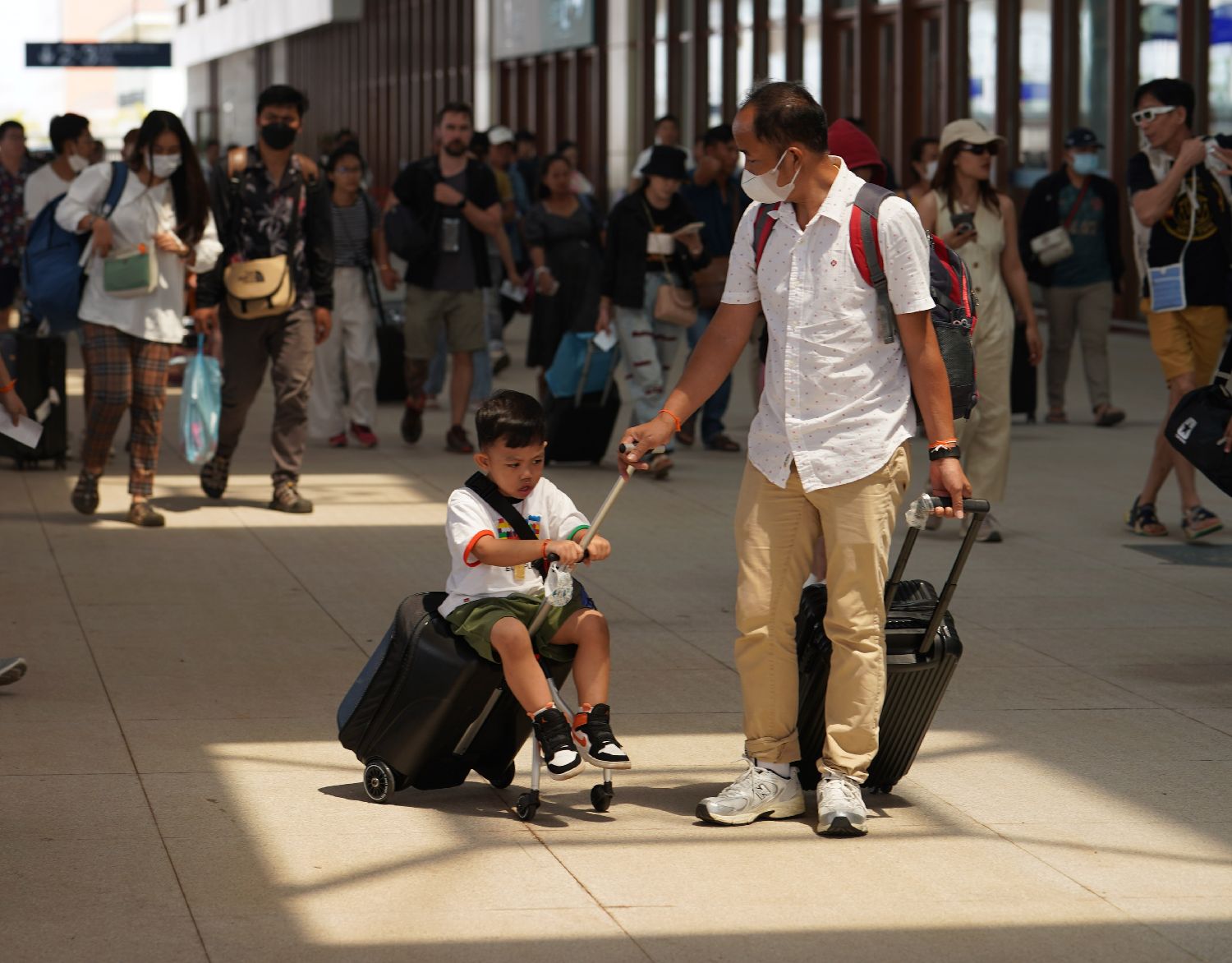 图为4月15日,在老挝万象,旅客在中老铁路万象站出站。(图/新华社)