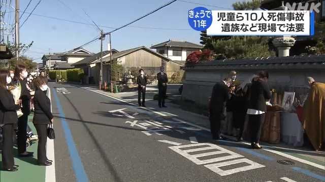 京都龟冈 车祸11年后 家属在事故现场举行追悼