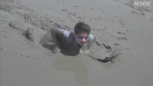 (日本头条讯)佐贺县鹿岛有明海滩开放,标志着旅游季节的开始。来自兵库县的初中生在游览时享受了泥滩的乐趣。