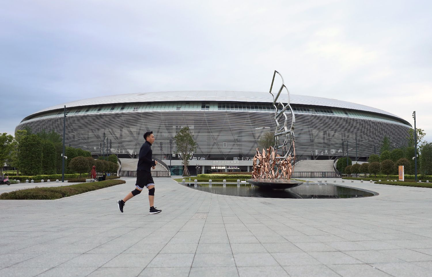 据了解,成都大运会共新建场馆13处,改造场馆36处,其中就包括东安湖体育公园和凤凰山体育公园这两个新兴的“超级地标”。所有场馆已于2021年全部完工,并经过测试检验符合国际赛事标准。记者近日在成都东安湖体育公园内看见,不少市民和运动爱好者在园内健身、打卡。图为4月23日,市民在成都东安湖体育公园内跑步经过大运会主体育场旁,该场馆形似“银色飞碟”。(日本头条郑闻摄)