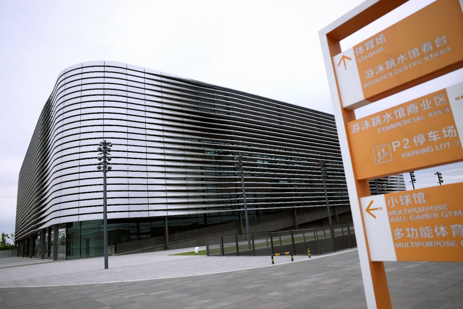 4月23日拍摄的成都东安湖体育公园小球馆外景,赛时将作为体操项目的训练场馆使用。(日本头条郑闻摄)