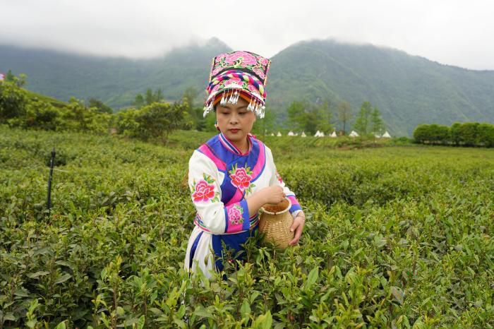 北川有1300多年的种茶制茶历史,茶叶基地9万亩,其中百年以上老茶树1.5万余亩。1979年“北川珍眉”茶叶出口美国,首开四川茶叶出口先河。2009年“北川苔子茶”荣获中国国家地理标志保护产品认证。图为羌族姑娘采摘茶叶。(中新网)