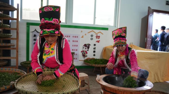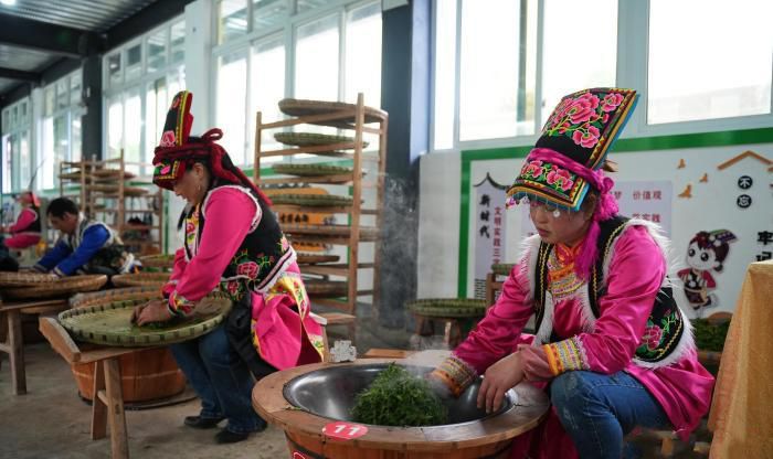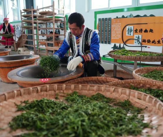 2022年北川县茶叶加工年产量1250余吨,茶叶综合产值4.53亿元人民币,茶产业已成为北川乡村振兴支柱产业。图为羌族人手工制茶。(中新网)