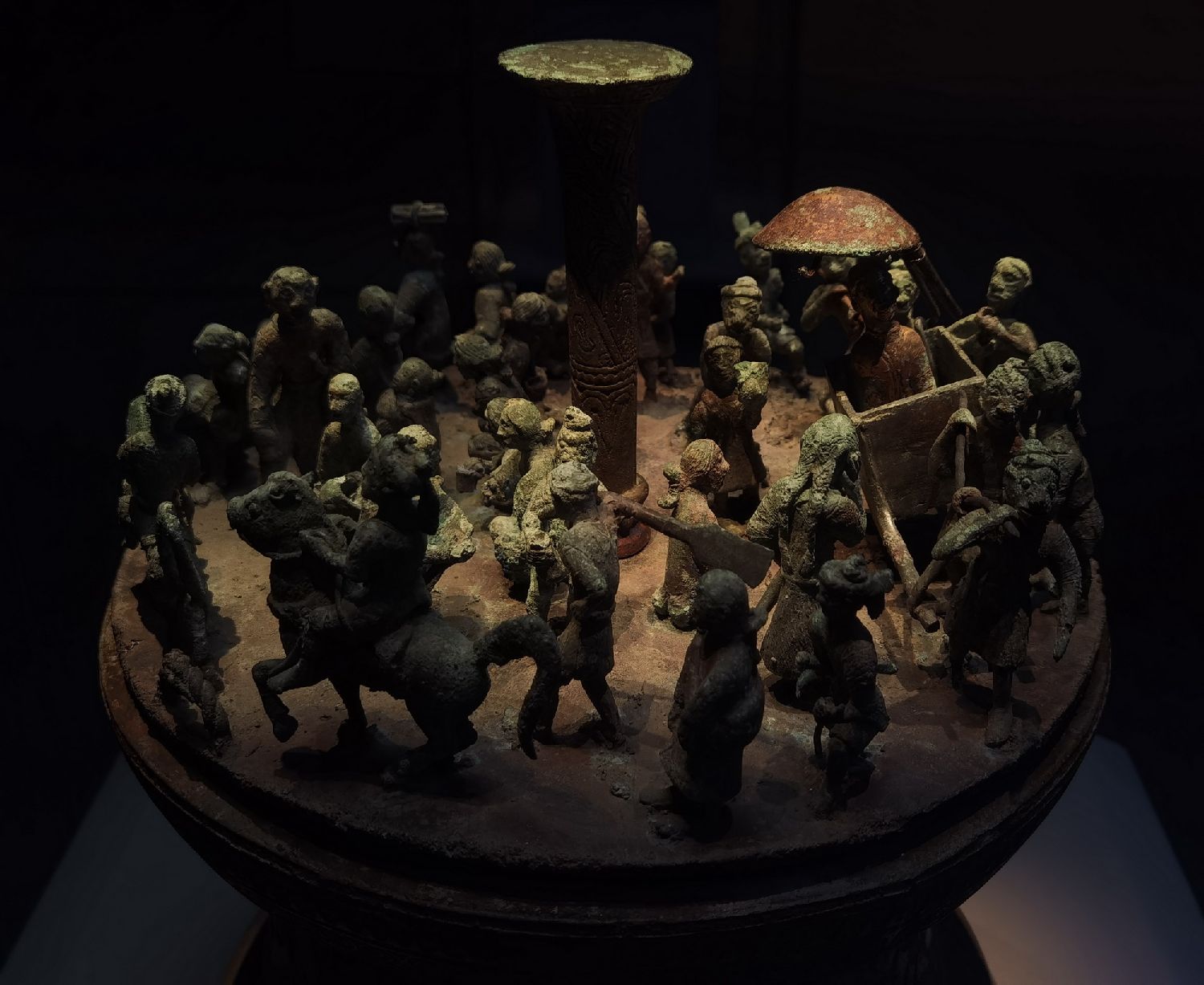 出土于云南省江川李家山墓地的祭祀场面贮贝器位居展览“C位”。(图/中新社)