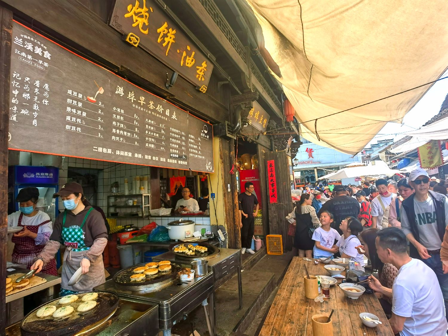 “五一”假期,浙江省兰溪游埠古镇迎来客流高峰,景区人潮涌动,游客纷至沓来。游埠古镇是千年古镇,至今还保留了水运时代吃早茶的文化,这里汇集了金衢一带的各类美食小吃,被游客称为“江南第一早茶街”。