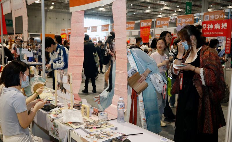 综合馆内,琳琅满目的“二次元”服饰热销。(上海上观新闻)