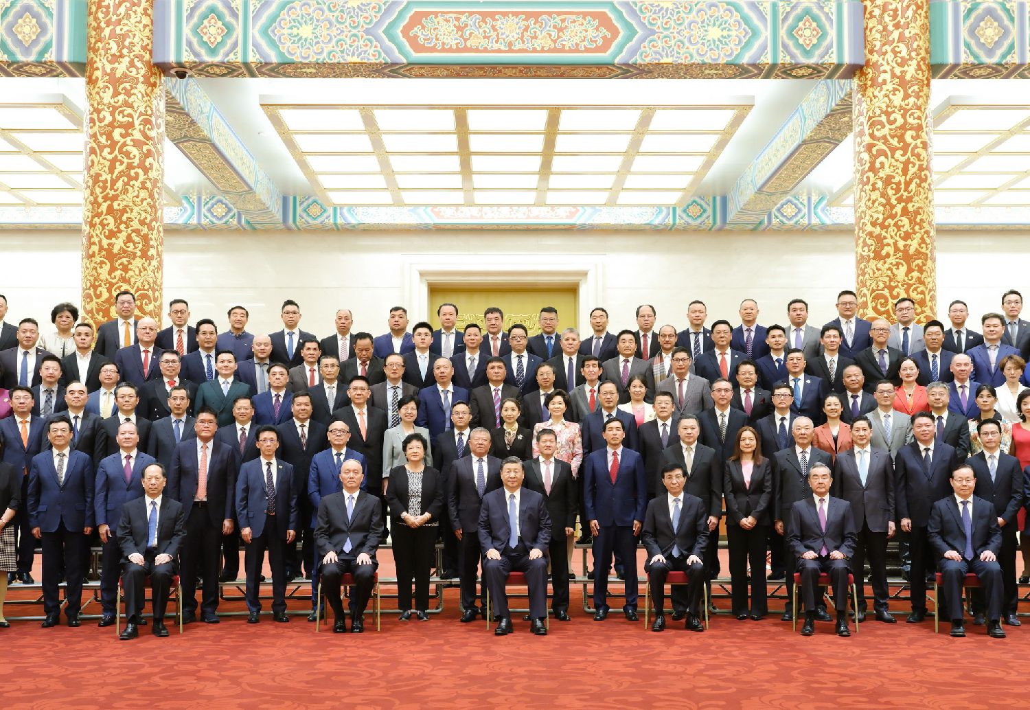5月8日,中国国家领导人习近平、王沪宁、蔡奇等在北京人民大会堂会见第十届世界华侨华人社团联谊大会代表。(图/新华社)