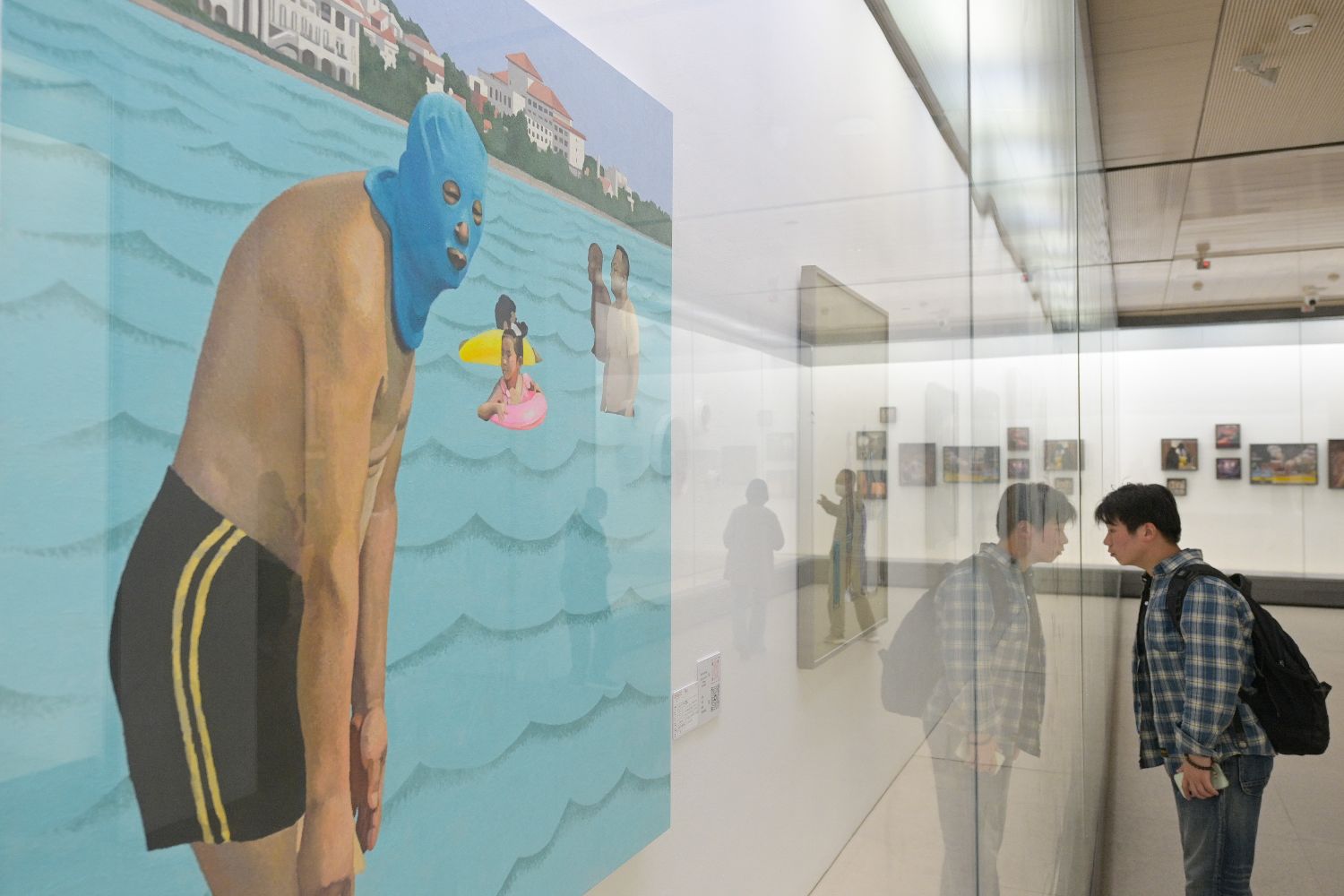 5月9日,观众在展览现场参观油画作品。(新华社)