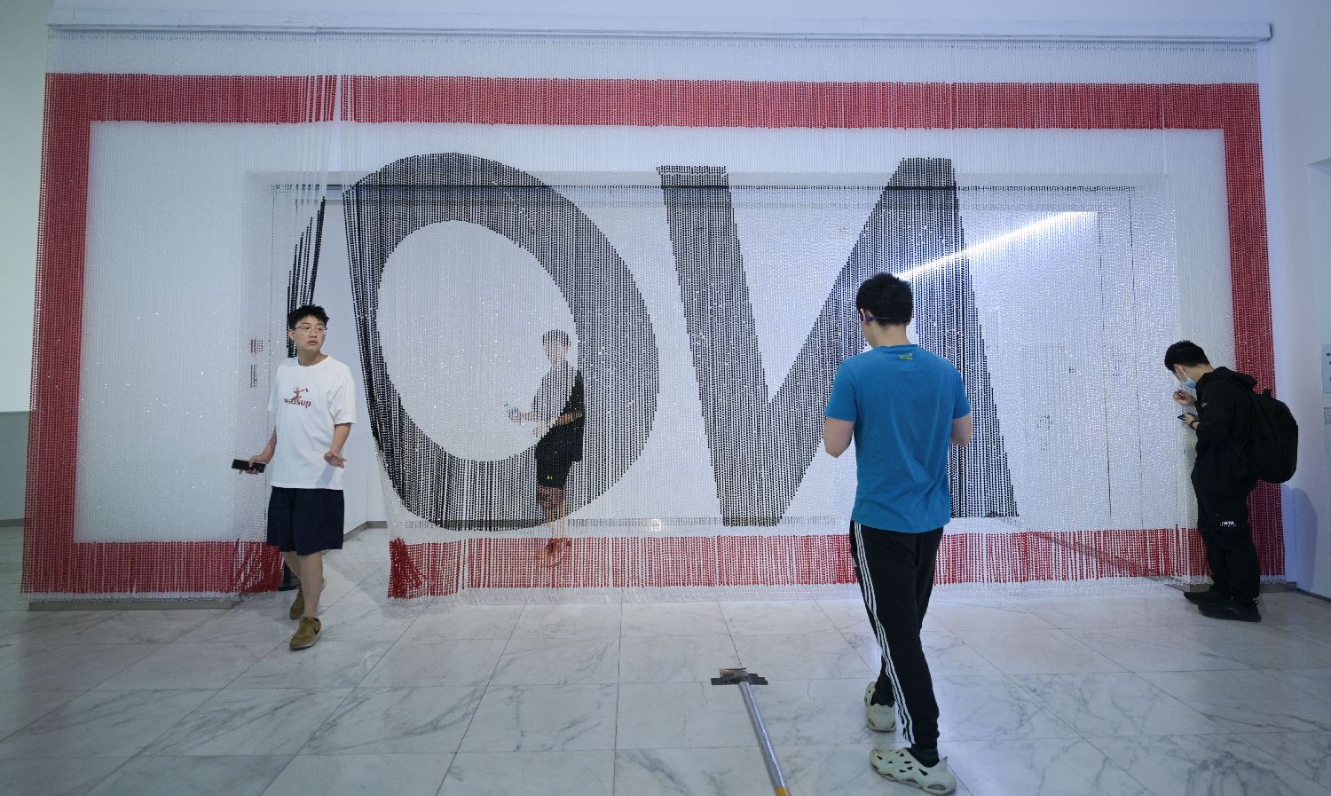5月9日,参观者在观赏参展作品《ON》。(新华社)