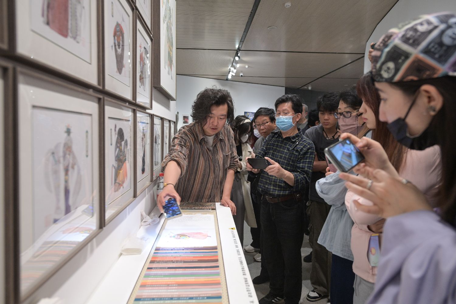 5月9日,作者申杰在展览现场向观众介绍自己的作品。(新华社)