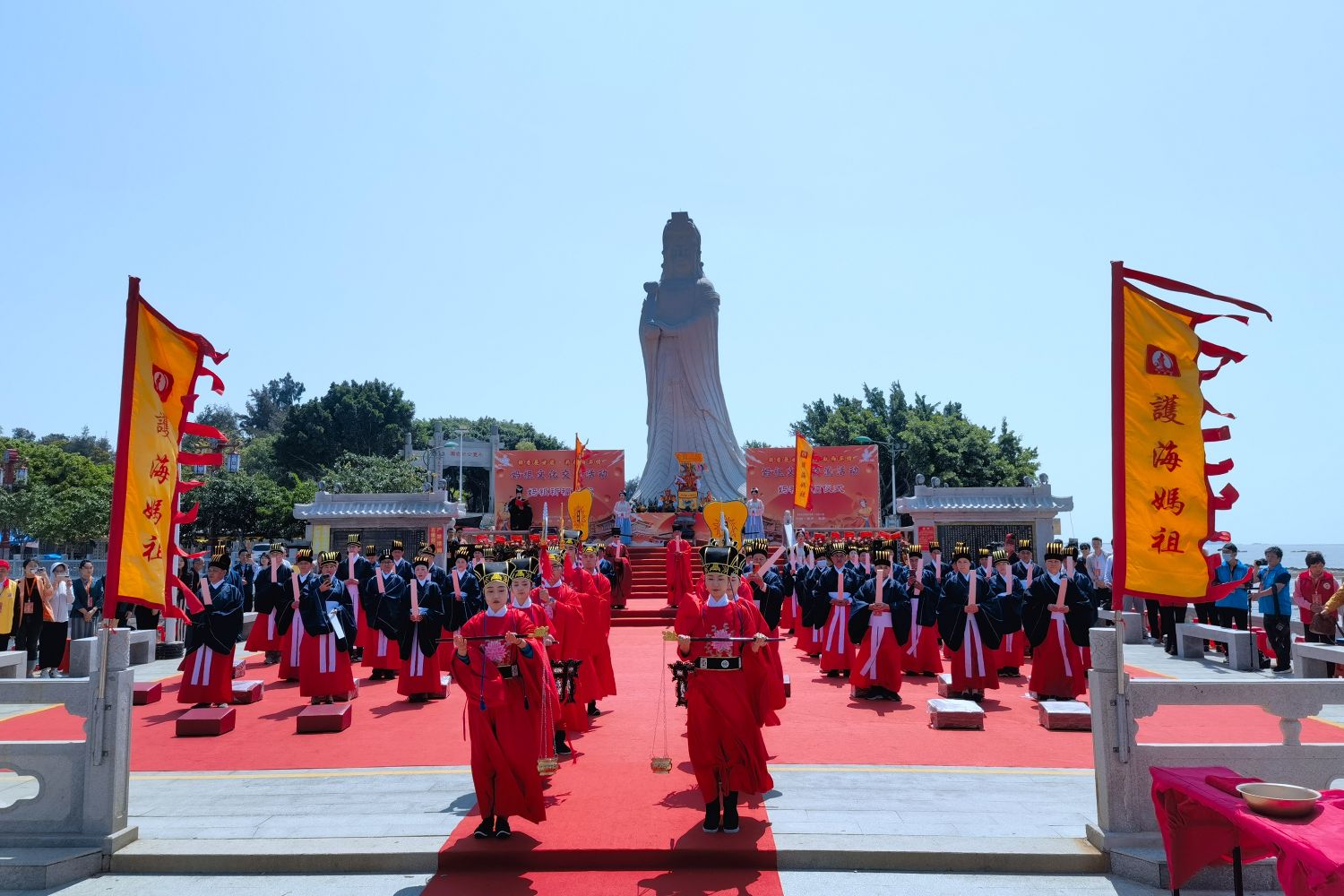 鸣钟鸣鼓、迎神、颂祝文……10日,“瓣香展世遗,共叙两岸情”妈祖祈福仪式在福建惠安东岭护海宫举行,两岸妈祖信众循古礼祈福,向这位海上庇护神表达虔诚心愿。