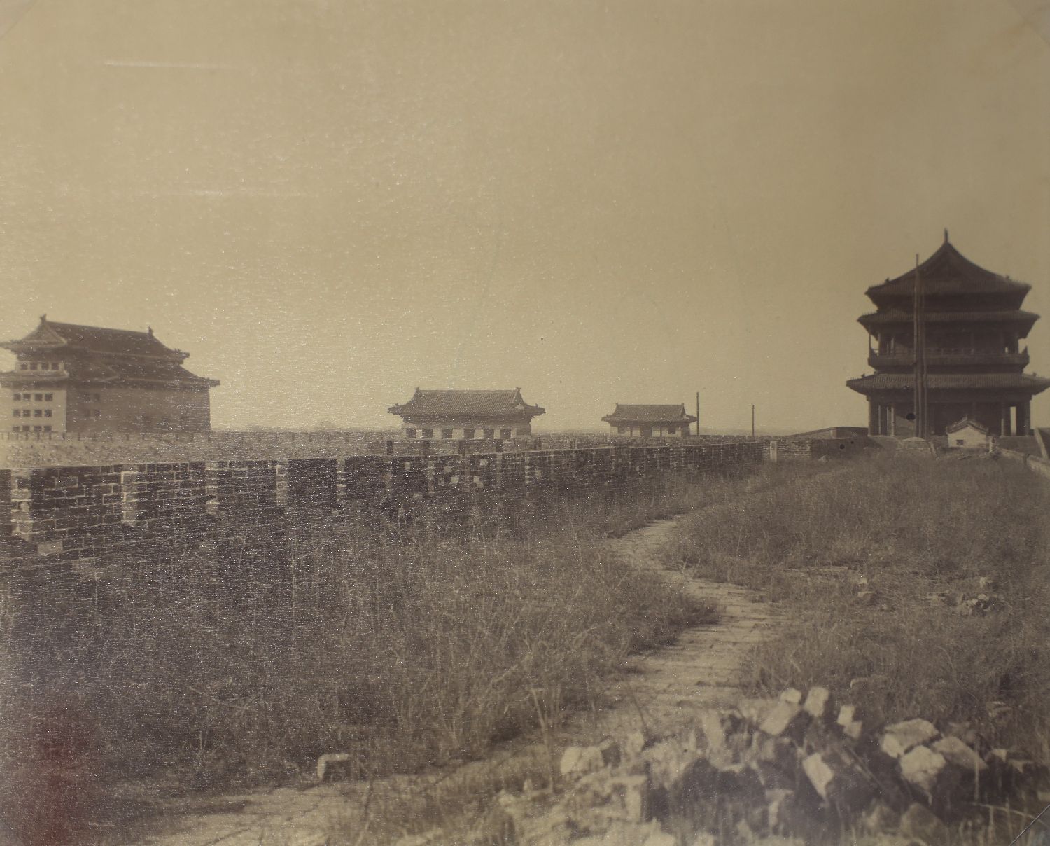 山本赞七郎于1980年代拍摄的“正阳门的城楼与箭楼”(蛋白照片)。 据介绍,山本赞七郎(1855—1943年)是清末年间赴华的日本摄影师,亦被认为是晚清最后十年里拍摄中国宫廷活动及皇室成员最多的摄影师之一。1897年到北京,1899年正式在霞公府(今贵宾楼饭店后)开设了第一家外国摄影师经营的照相馆“山本写真场”,也是北京最早的照相馆之一。